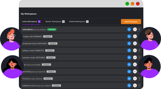RunCode supports limitless Linux-based programming languages and frameworks thereby opening up a world of opportunities for the code-indulgent folks. Explore and launch the pre-configured workspaces with exactly the tools you need and start coding!